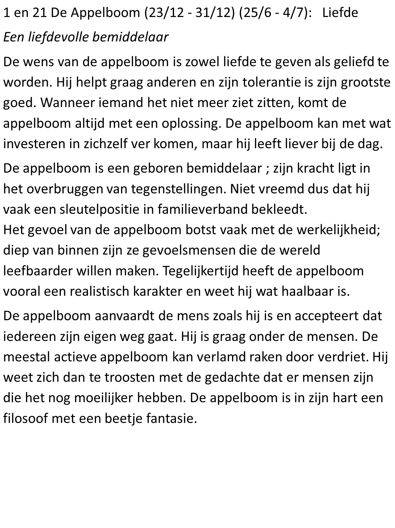 - Appelboom (23/12 – 31/12): Liefde