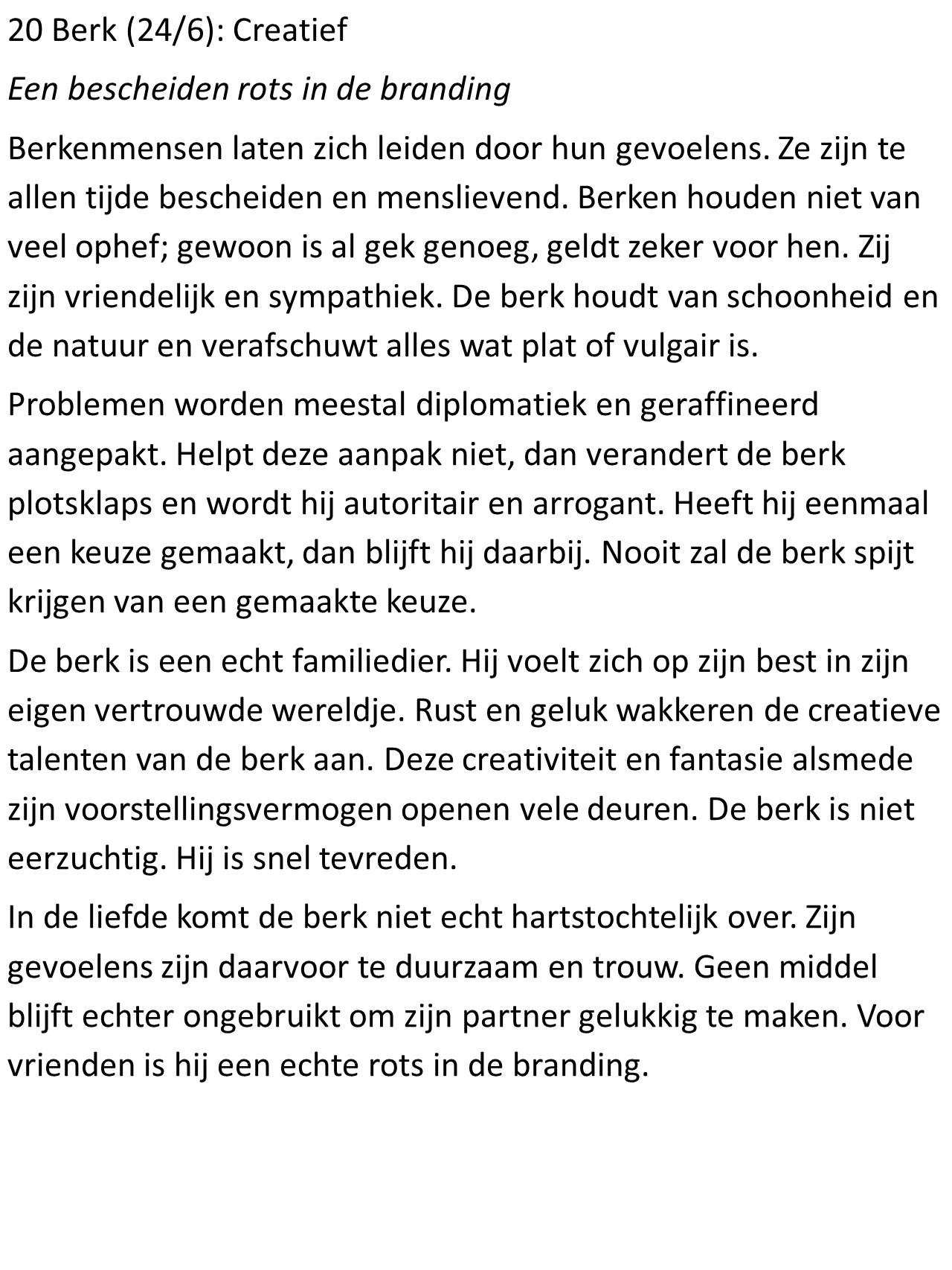- Berk (24/6): Creatief
