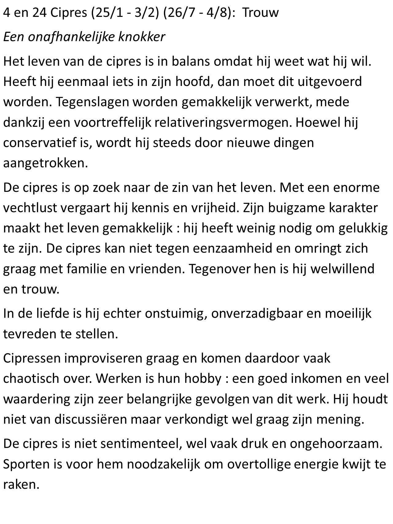 - Cipres (25/1 – 3/2): Trouw