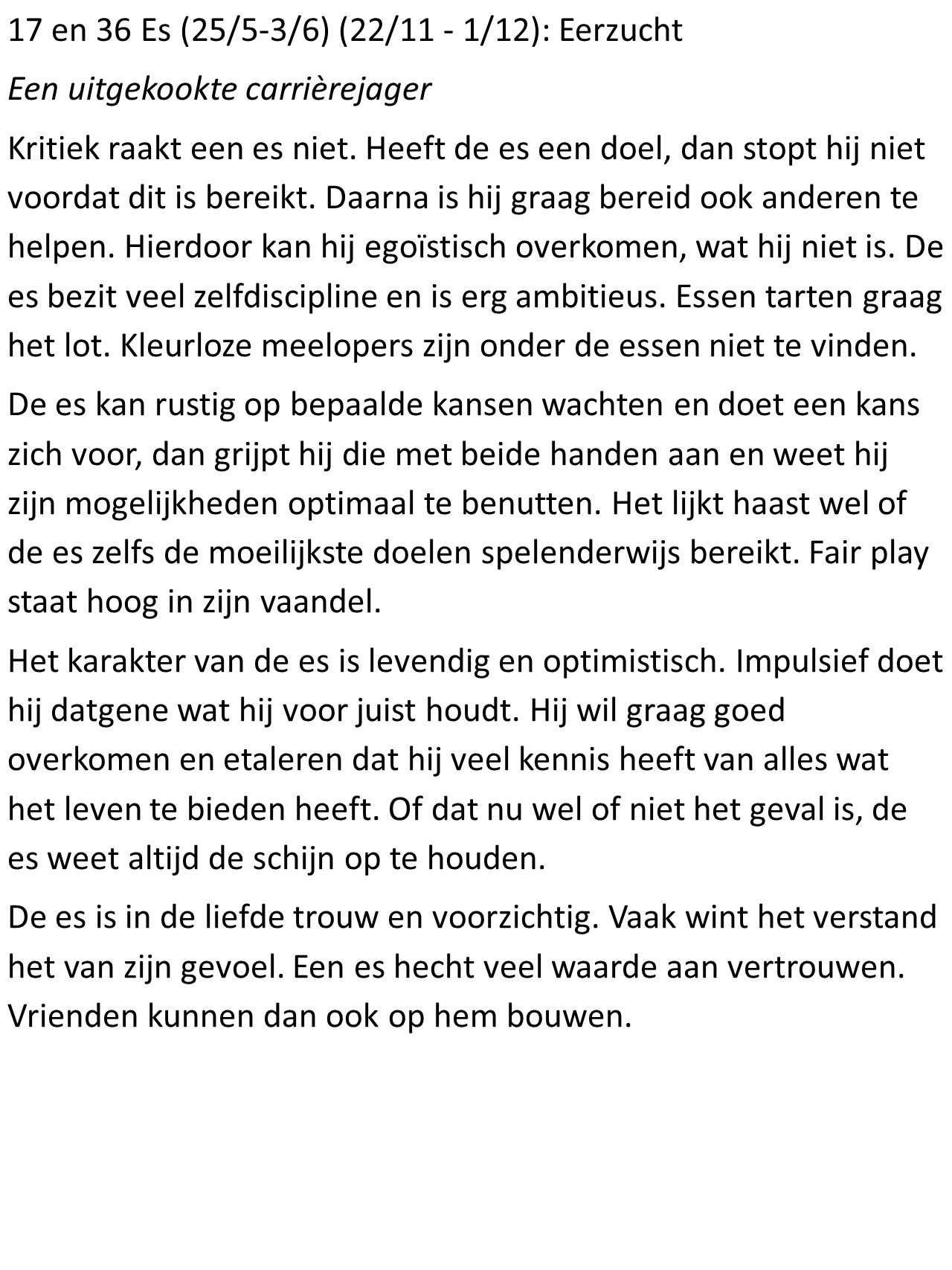 - Es (22/11 – 1/12): Eerzucht