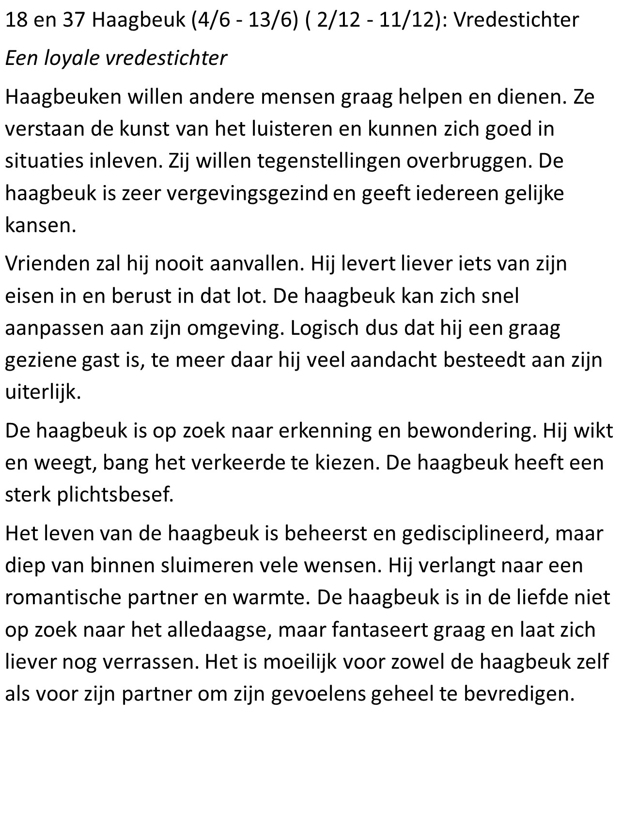 - Haagbeuk (4/6 – 13/6): Vredestichter