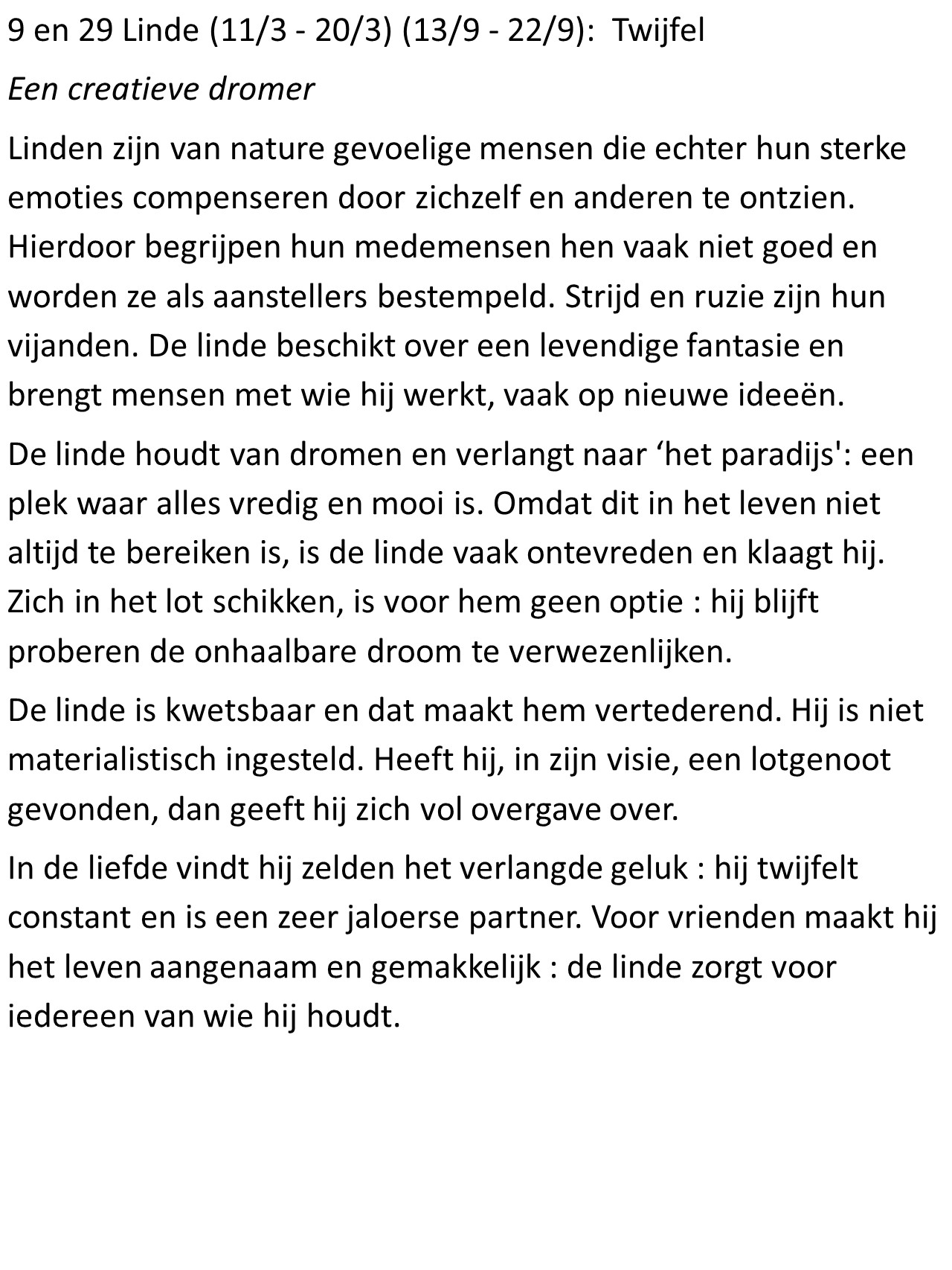 - Linde (13/9 – 22/9): Twijfel