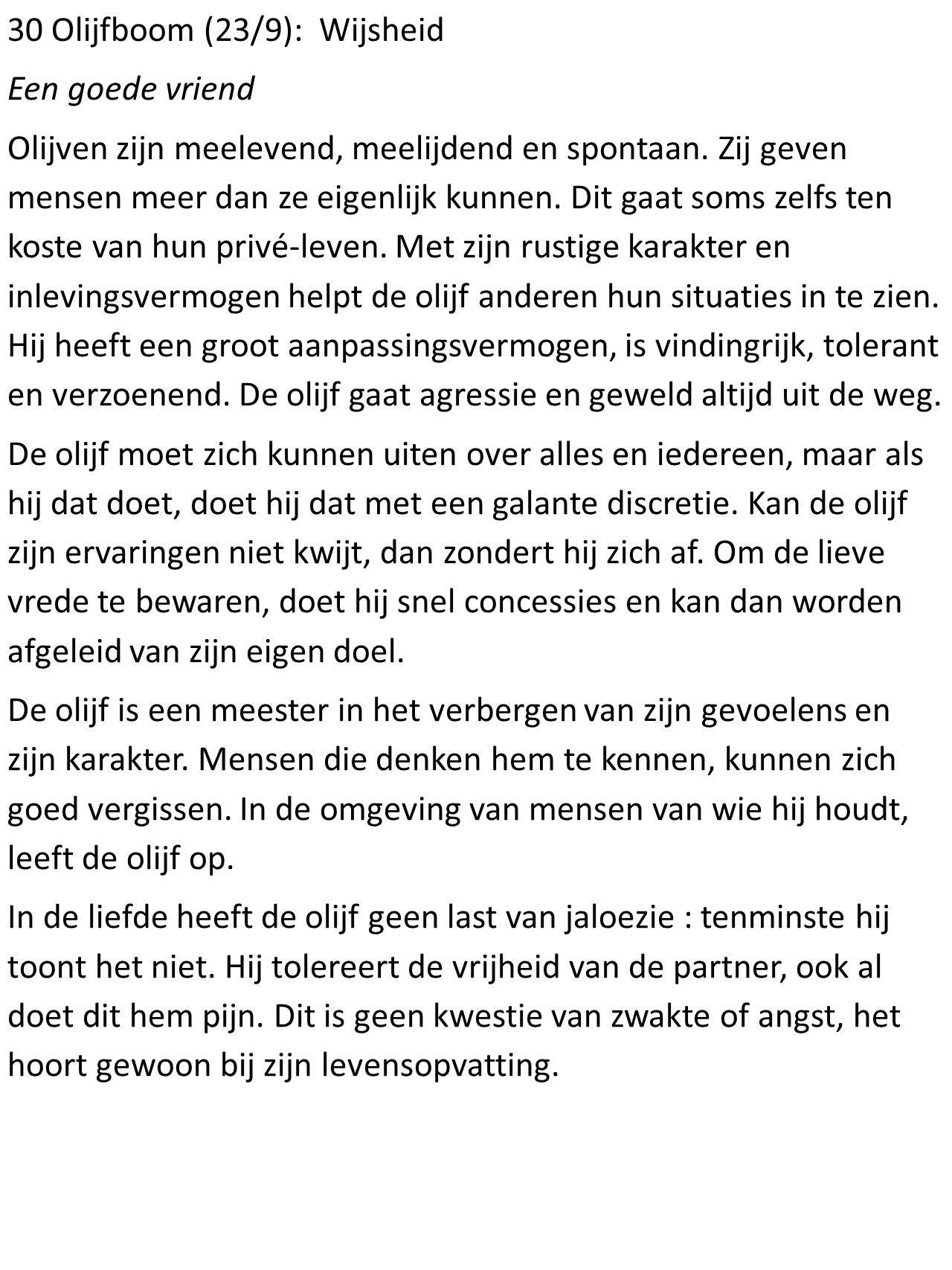 - Olijfboom (23/9): Wijsheid