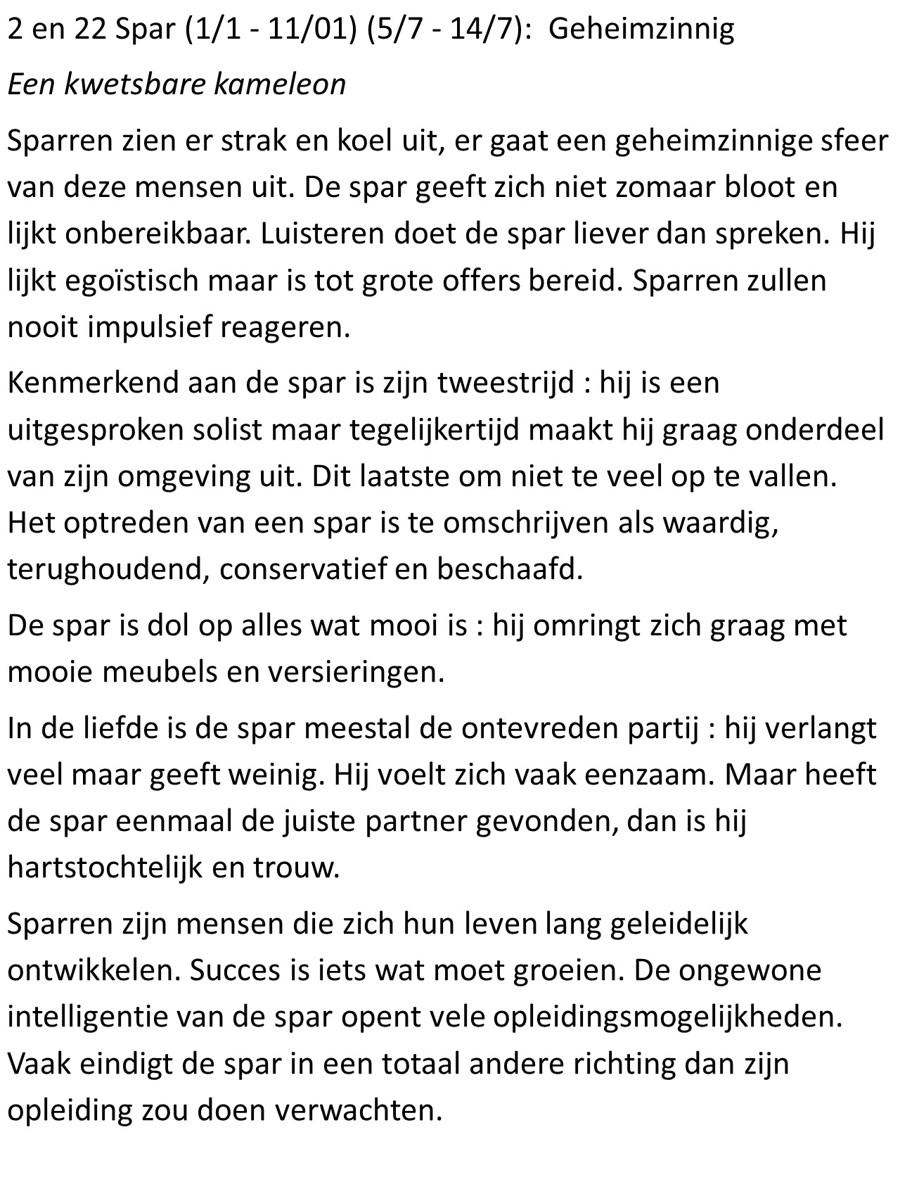 - Spar (5/7 – 14/7): Geheimzinnig