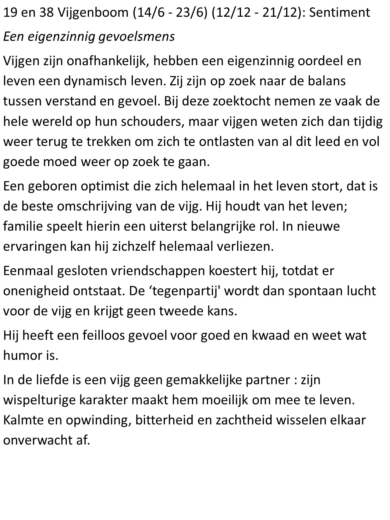 - Vijgenboom (12/12 – 21/12): Sentiment