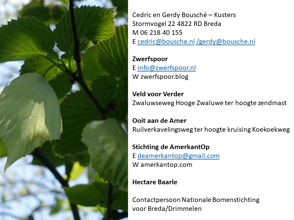 Wil je wat zeggen of weten over initiatieven als Bomen met een Boodschap Breda, Ooit aan de Amer, Veld voor Verder, laat maar weten!