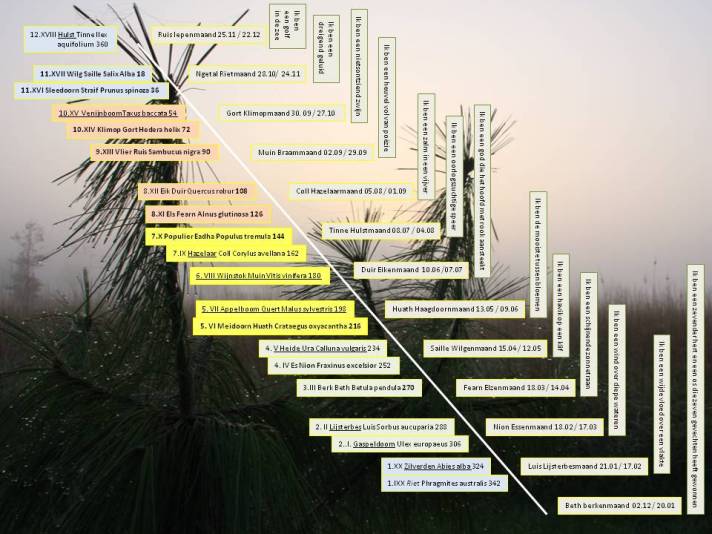 Zie hier de opbrengsten. Dat is ingewikkeld en vraagt om uitleg. In ieder geval staat er een Keltische Boomcirkel waar iedereen de boom kan vinden die bij de verjaardag past.